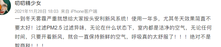 幫助室內(nèi)換氣,是新風最主要的功能。因為有濾材,還能過濾PM2.5。即使是霧霾天氣,窗戶緊閉,依然能呼吸到新鮮空氣。